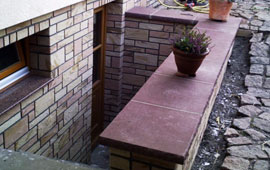 Einer Wärmedämmschicht in unterschiedlicher Dicke, die auf den Untergrund verklebt und/oder mechanisch befestigt wird, einer Armierungsputzschicht mit eingebettetem Armierungsgewebe und einer Schlussputzbeschichtung mit oder ohne Anstrichbeschichtung.